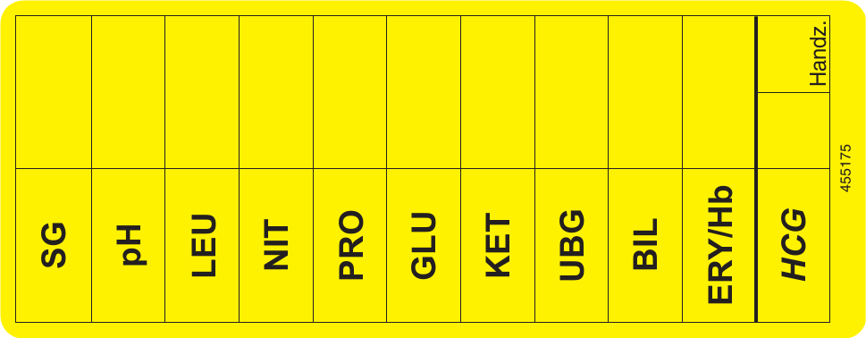 PuLS-Etiketten 32 x 82 mm / SG-pH-LEU-NIT-PRO-GLU-KET-UBG-BIL-ERY/Hb-HCG