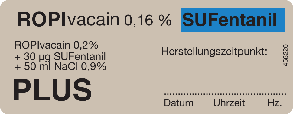 PuLS-Etiketten 32 x 82 mm / ROPIvacain 0,16% SUFentanil PLUS
