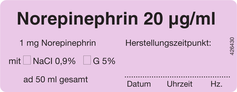 PuLS-Etiketten 32 x 82 mm / Norepinephrin 20 µg/ml
