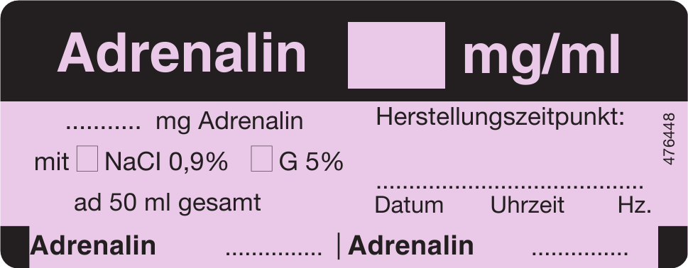 RD: Spritzenpumpenetik. 32 x 82 mm Blattware / Adrenalin mg/ml, ….. mg Adrenalin