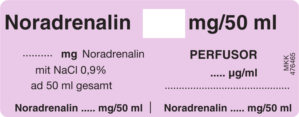 RD: Spritzenpumpenetik. 32 x 82 mm Blattware / Noradrenalin ..... mg/50 ml